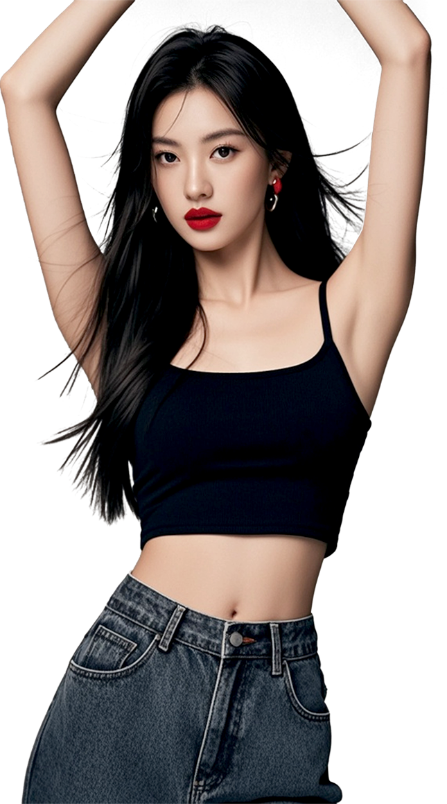 Đùi thon gọn, tự nhiên từ eo đến đầu gối.