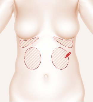 Mỡ quanh rốn là dạng sợi, cần lực hút rất nhẹ nhàng. Modelline sử dụng ống thông siêu nhỏ để hút nhẹ nhàng vùng quanh rốn.