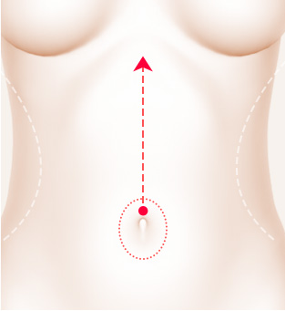 Nếu phần bụng trên thiếu độ đàn hồi, rốn sẽ bị chèn ép, tạo thành hình dạng nằm ngang. Công nghệ độc đáo của Modelline giúp rút ngắn các dây chằng giữ rốn, duy trì độ đàn hồi.